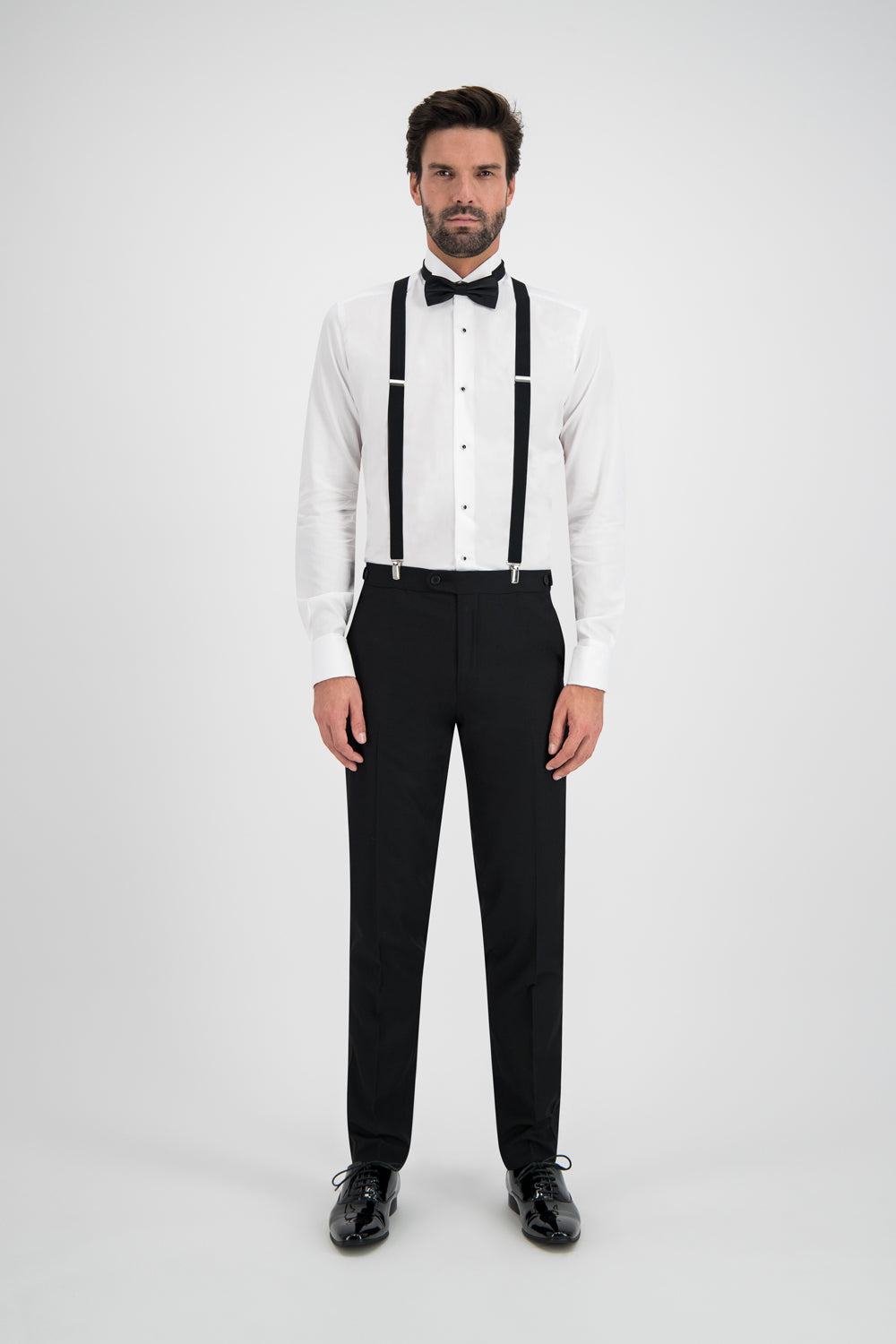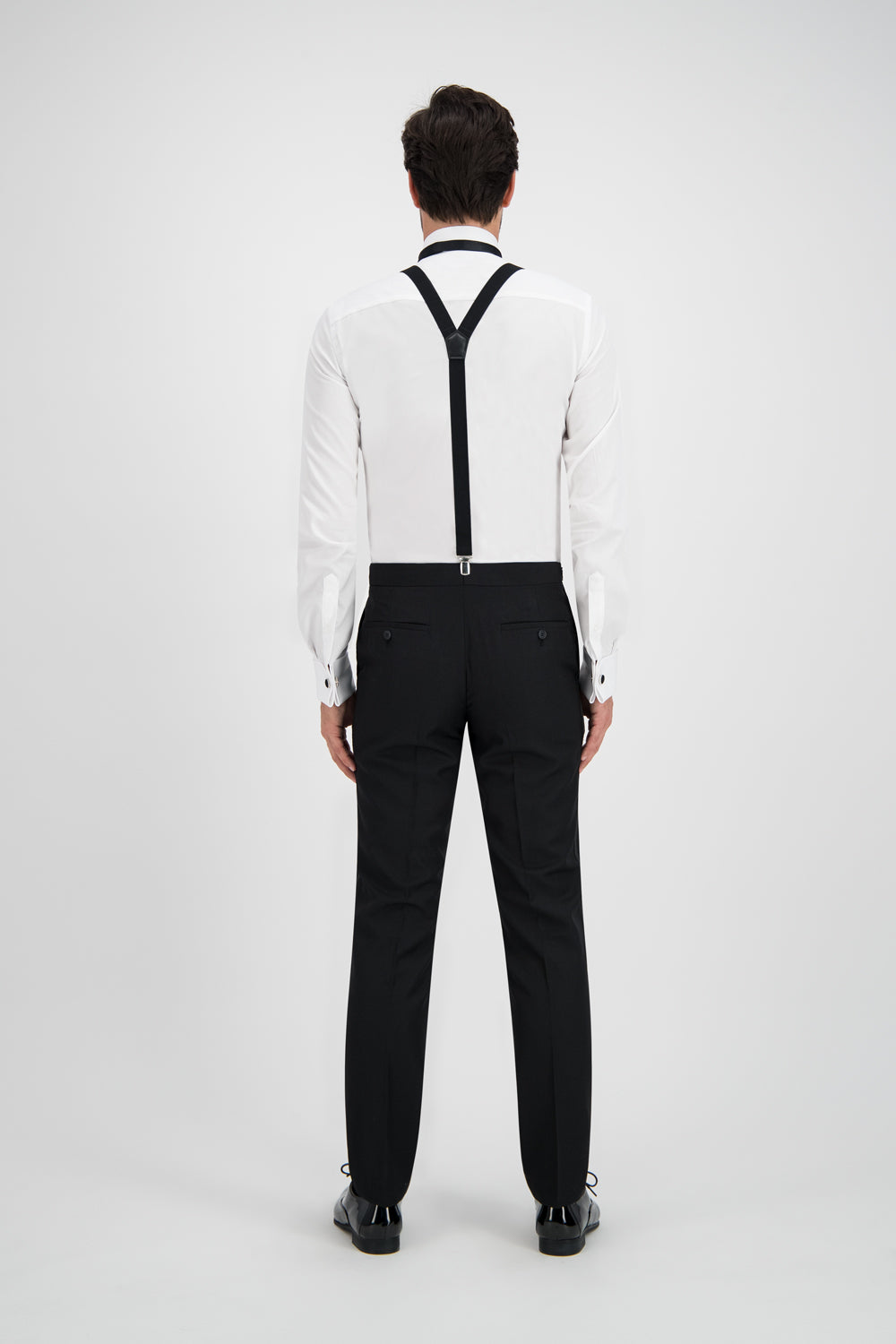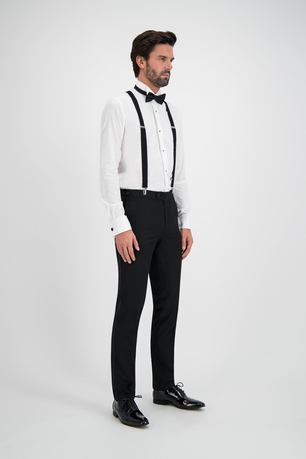 Egészítsd ki a szmoking öltözetedet ezzel a Fekete Elasztikus Nadrágtartóval. A masszív kivitelezésnek és klasszikus megjelenésének köszönhetően ezek a nadrágtartók tökéletes kiegészítők a férfi öltönyökhöz és kosztümökhöz. Nemcsak támogatást nyújtanak, hanem egy kis stílust is adnak minden formális alkalomhoz.