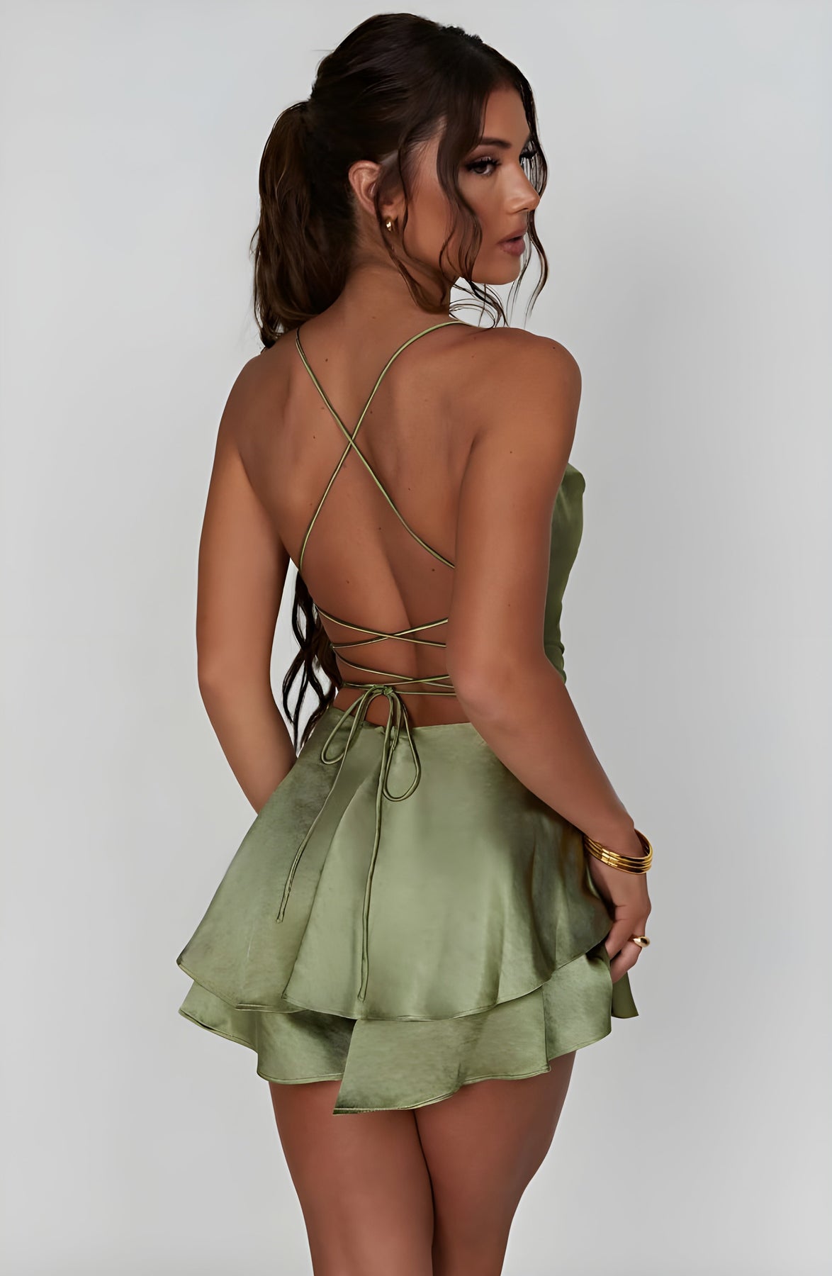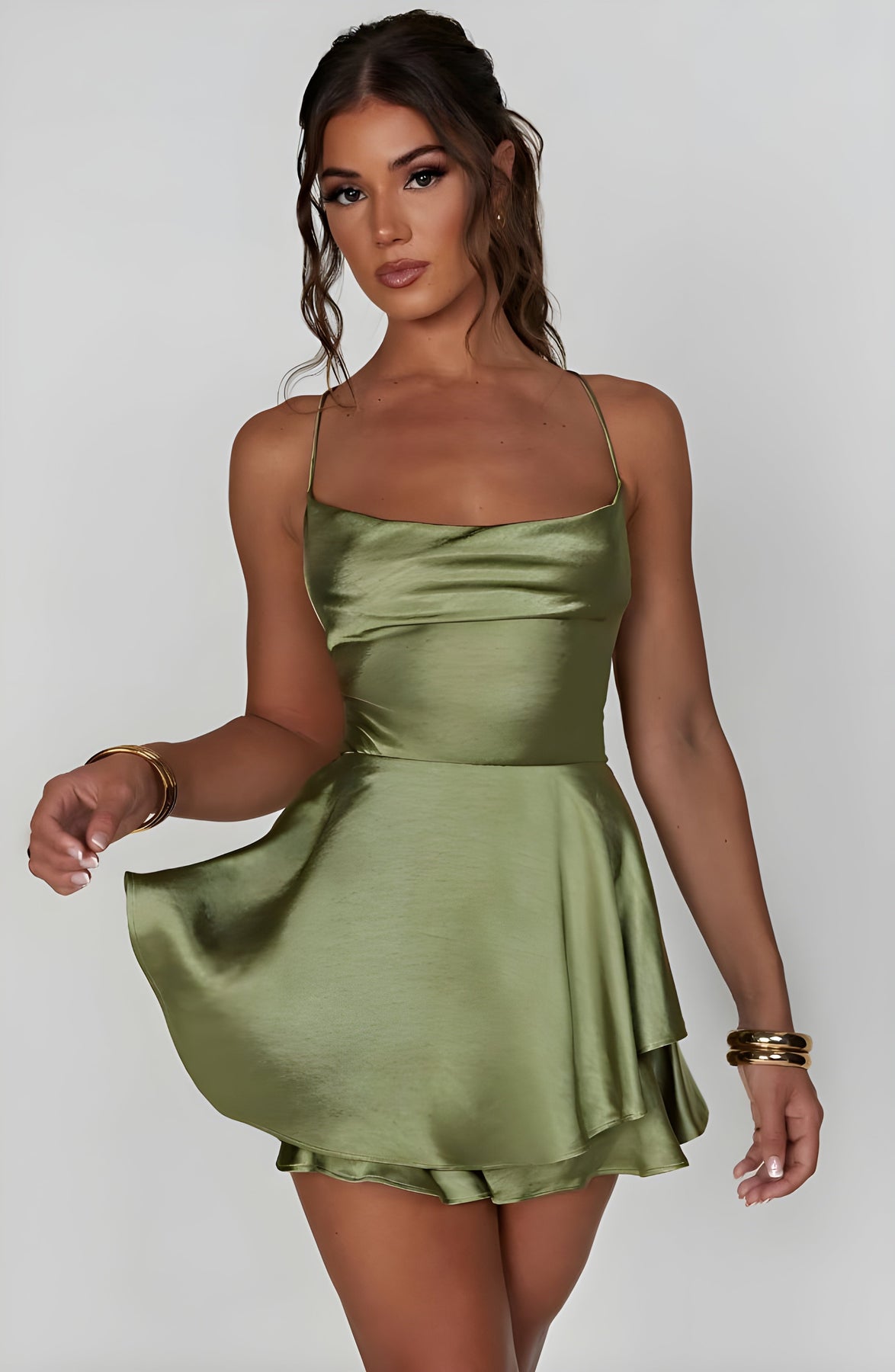 Női Mini Ruha – Selyem Hatás – A-vonal – Cowl Nyakkivágás – Spagettipántok – Partiruha