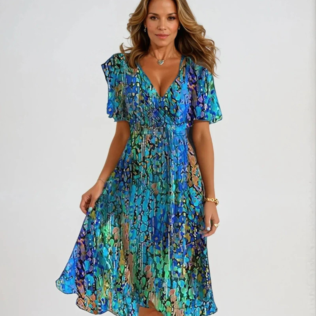 Álmodsz egy ruháról, amely finom ragyogásba burkol, és kiemeli természetes szépségedet. Az Eliška modell ötvözi a szofisztikált szabást egy könnyű és folyékony anyaggal, amely egész nap könnyedséget és eleganciát biztosít számodra. Akár romantikus vacsorára, nyári bulira vagy városi sétára indulsz, ez a ruha effortless módon ragyogtat majd.