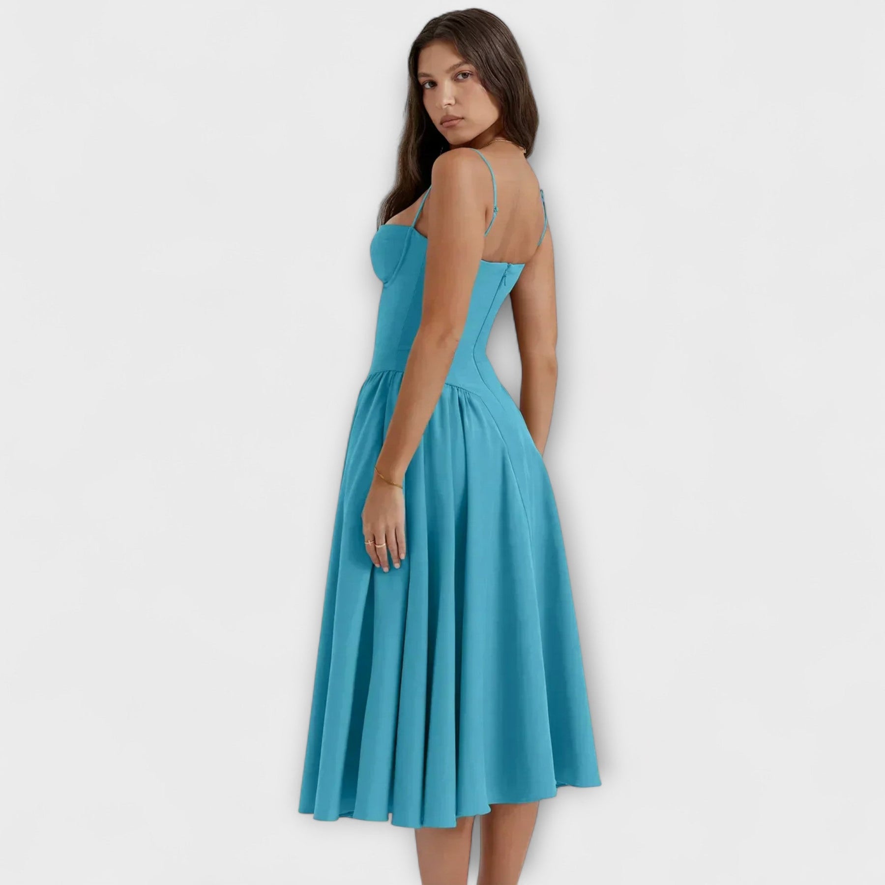 A Rosalie fűzőruha lenyűgöz ujjatlan dizájnjával és a derékra szabott fazonjával, amely tökéletesen kiemeli a sziluettedet. Ez a ruha a finom elegancia megtestesítője, és ideális választás mindazok számára, akik a kifinomult stílust és az önbizalmat értékelik.