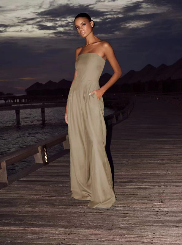 Női Jumpsuit - Pánt Nélküli - Padlóhosszú Széles Szárak - Elegáns Laza Fit