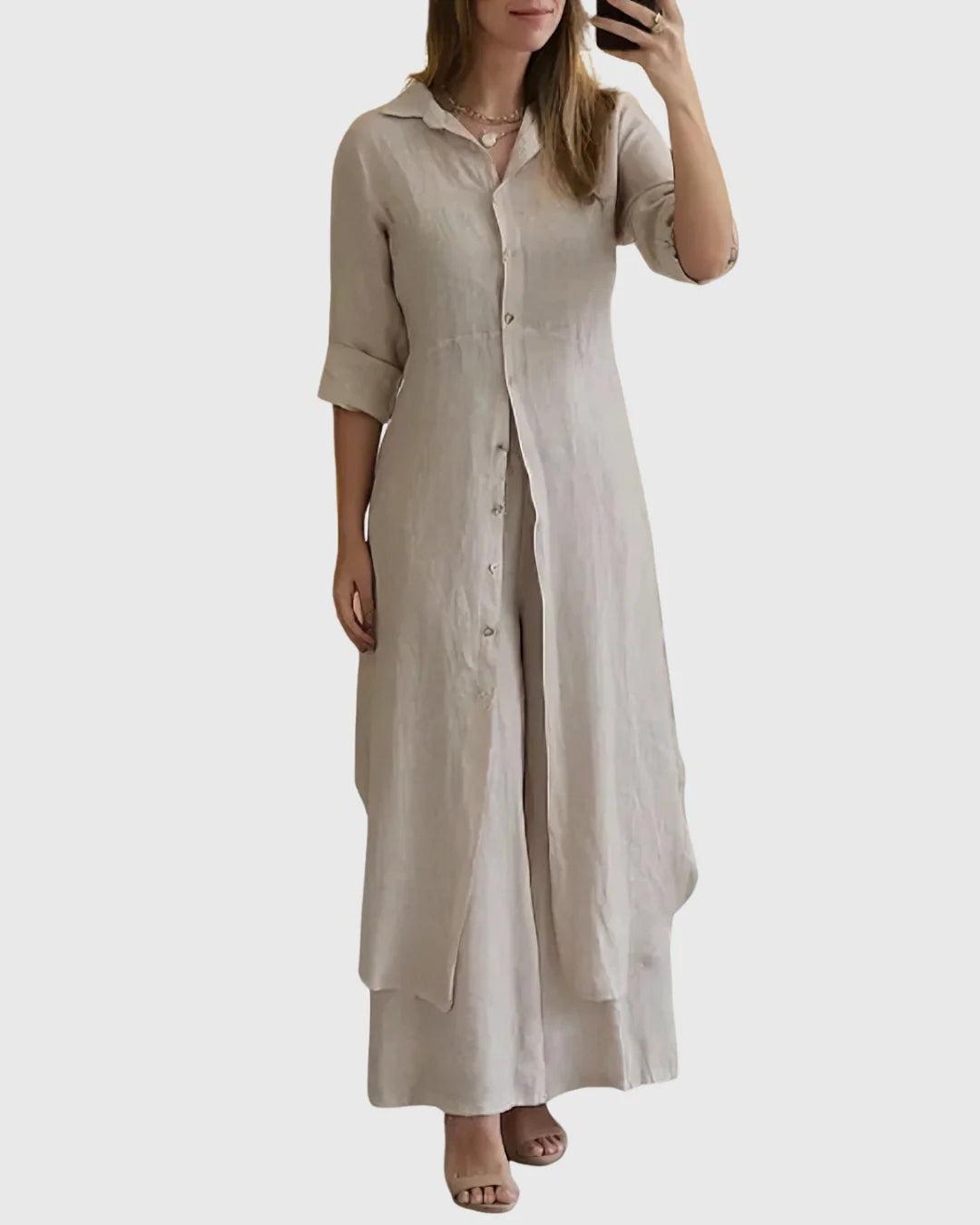 ✔ Versatile Design: A dress and wide-leg pants that can be worn together or styled separately.